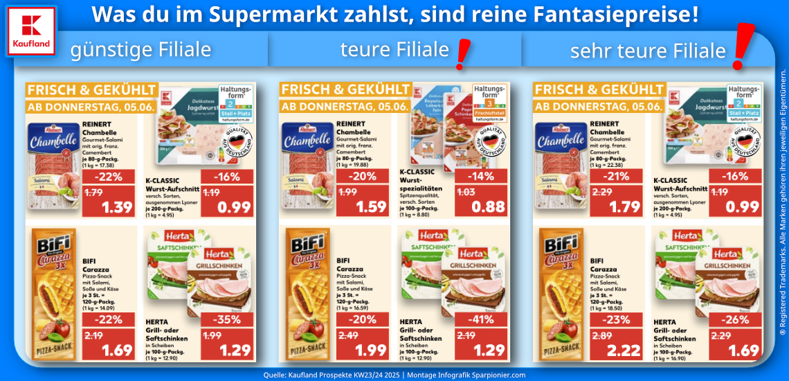 Vergleiche selbst die Angebote im Bild: Gleicher Tag, aber 3 verschiedene Kaufland-Filialen.